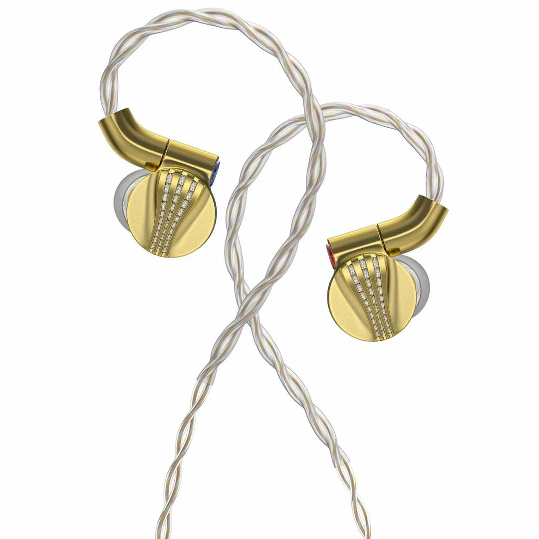 BUNDLED WITH A GOLD-SILVER-COPPER HYBRID CABLE WITH MMCX CONNECTOR AND PLUGS