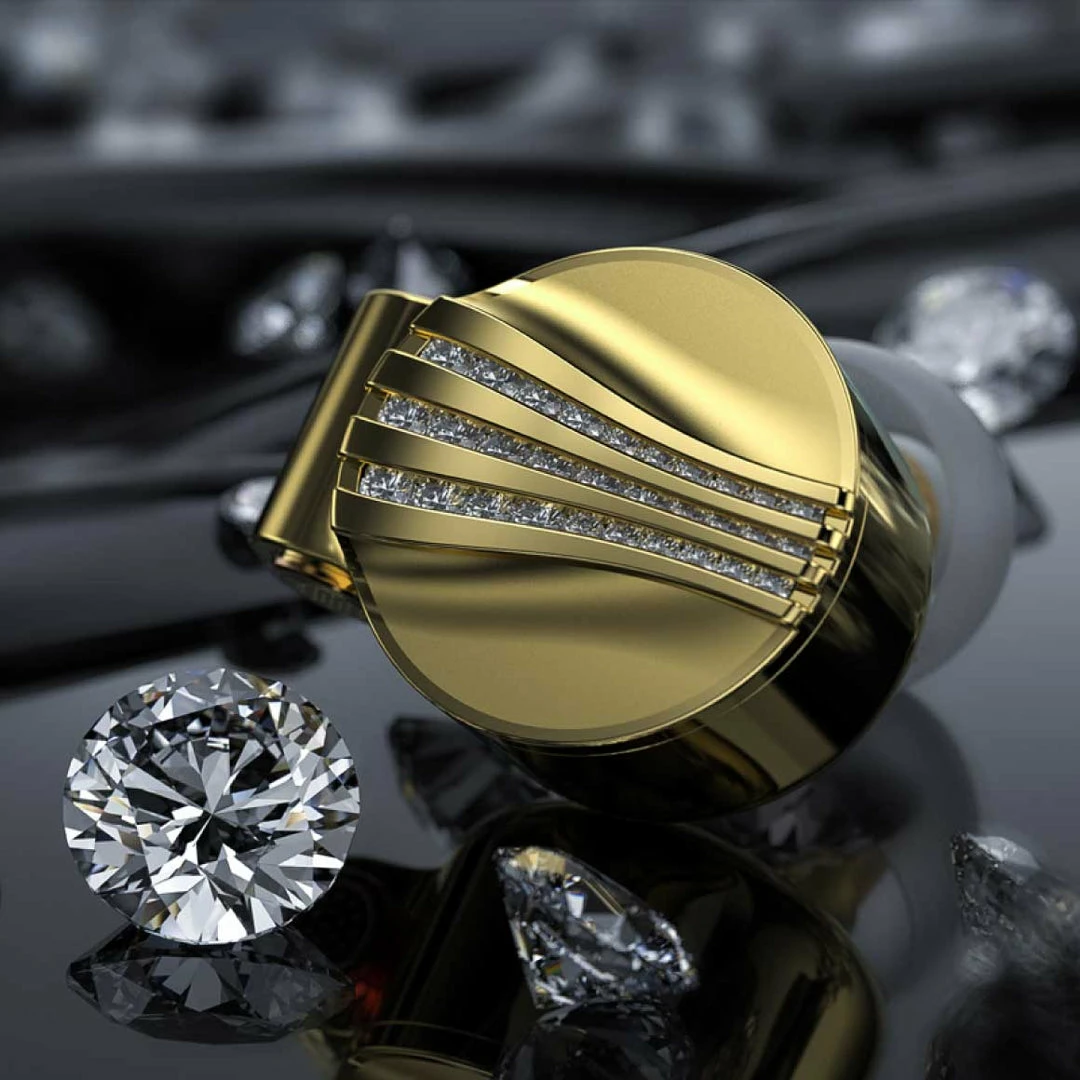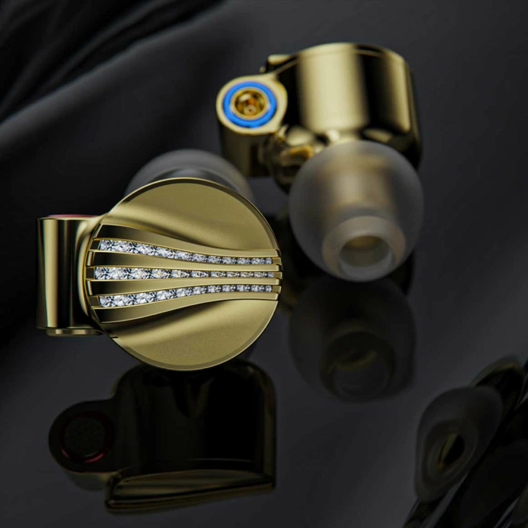 “The whole body of the FiiO FDX is plated with 24K gold for a luxurious texture and glossiness, especially in the light and shadow. There are 30 imitation diamonds for each earphone unit.”