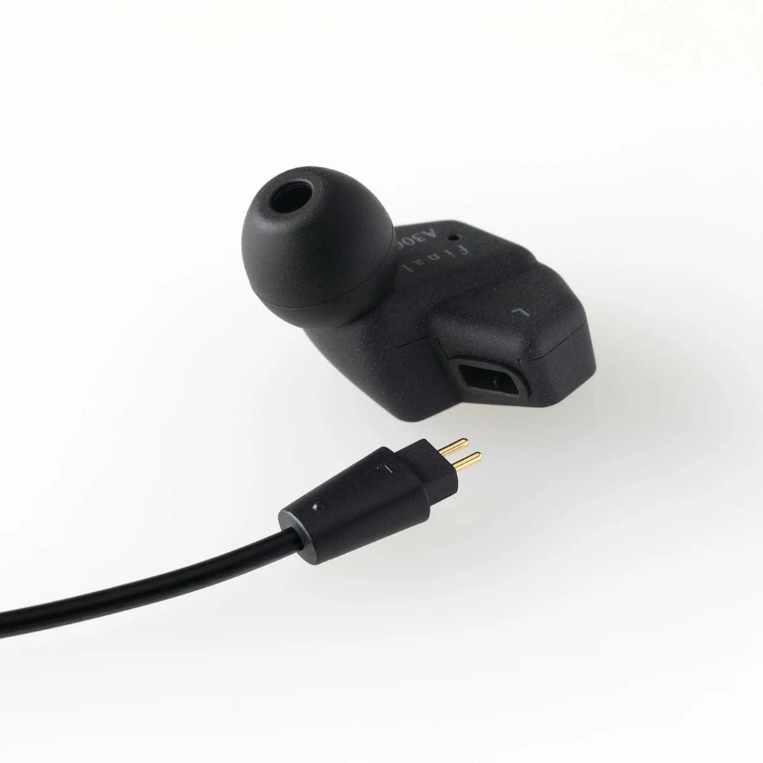Final A3000 employs a thick and flexible cable to prevent breakage and tangling whilst using the earphones. The cable is made of soft, supple coating material designed to eliminate static noises. A3000 utilises a more flexible OFC (oxygen-free copper) cable to transmit better audio signals from a device to the IEM. This design drastically suppresses touch noise when the connecting cable touches the body. The earphones feature a 2Pin connector with the highest versatility ฯ0.78 standard and an L-shaped jack to further solidify the durability and upgradability. This durable cable and connector make connecting to a source device easy and seamless.
