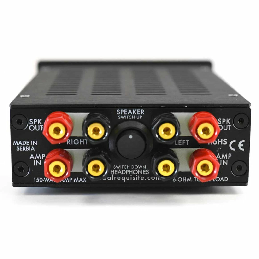 The RAAL-requisite SR1a is not a standard headphone and will not work on most conventional headphone amplifiers. There are currently 2 different ways to connect and drive these headphones – a special ribbon amplifier or the interface box with a speaker amp. The SR1a interface box converts a typical speaker amplifier output into the load characteristic that the headphones require. Connect your speaker amplifier to the interface via speaker cables and plug the SR1a into the 4-pin XLR connection on the front of the interface box.