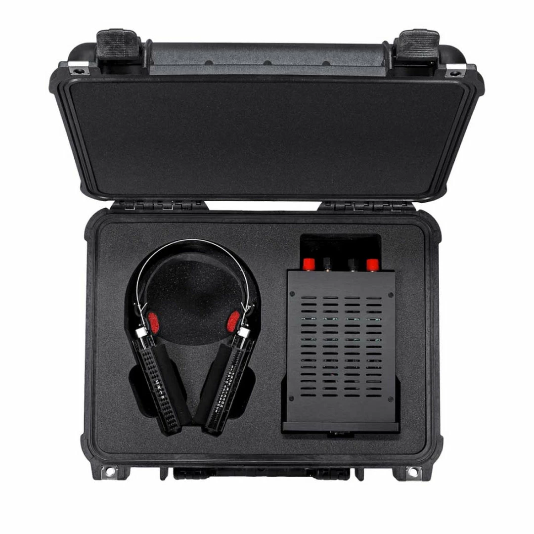 SR1a + Schiit Jotenheim R Amplifier with the optional DAC card. This amplifier is designed specifically for the Raal/Requisite ribbon headphones. It is a unique amplifier that delivers up to 13A per channel into the Raal’s extremely low impedance load, including baffle compensation. You do not need a speaker amp attached to this as you do on the interface box option. This option includes the amp with the True Multibit DAC module, which includes a unique digital filter and multibit DAC architecture, creating a great one-box system that’s easily transportable.