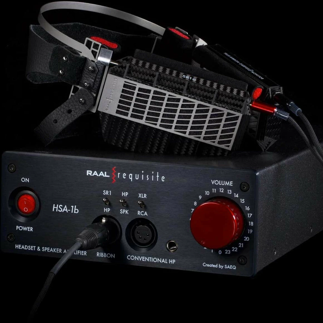 SR1a + RAAL HSA-1b headphone and speaker amplifier. The HAS-1b is a direct drive amplifier for True-Ribbon Earfield Monitor headphones, speakers, conventional dynamic, and planar magnetic headphones. The amplifier works seamlessly with the SR1a ribbon headphone but can also work for traditional headphones and speakers. The amplifier has unbalanced single-ended RCA and true-balanced XLR inputs. The HAS-1b also has a precision 24-step attenuator for rock-solid left/right balance at all listening levels. This is a perfect match for your SR1a ribbon headphones if you are just looking for an amplifier that is tailor-made for the SR1a direct from the manufacturer.