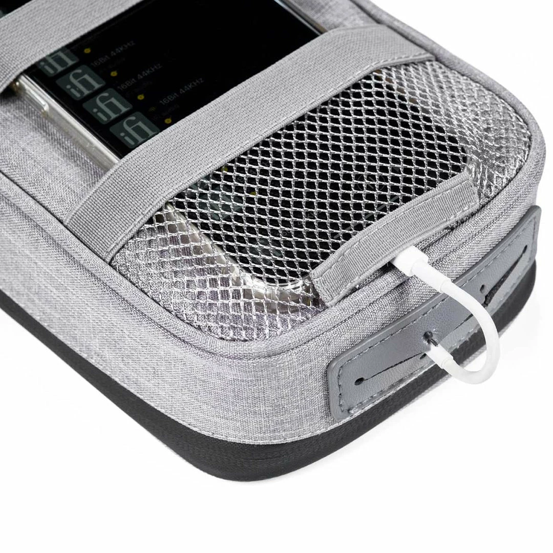 The dual-port design of the iFi Audio iTraveller travel case is carefully thought and implemented for easy use and allows the devices inside to stay secure at all times. This design of the dual ports allows for maintaining an organised case and this is done to enable the user to draw out earphone cables for easy access. These ports allow even 6.3mm jacks to pass through, allowing you to experience the best quality sound.
