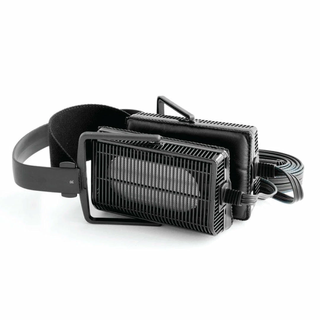 “The Stax SR-L300 are very good critical listening, open-back, electrostatic headphones with a unique look. They have wide rectangular ear cups with a grill design that give them a retro feel.”