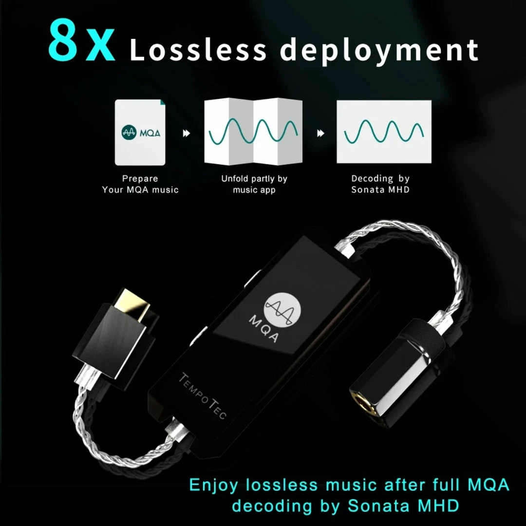 TempoTec Sonata MHD is capable of decoding MQA (Master Quality Authenticated) audio, bringing you the studio/concert experience. The Sonata MHD includes MQA decoding technology, which can connect to an MQA Core signal and complete the final unfold of an MQA file. To fully utilise this, MQA-enabled software must be used on the smartphone (e.g. HiBy Music App) to realise 8x unfolding of MQA audio. The device is certified by the Japan Audio Society for high-resolution audio.