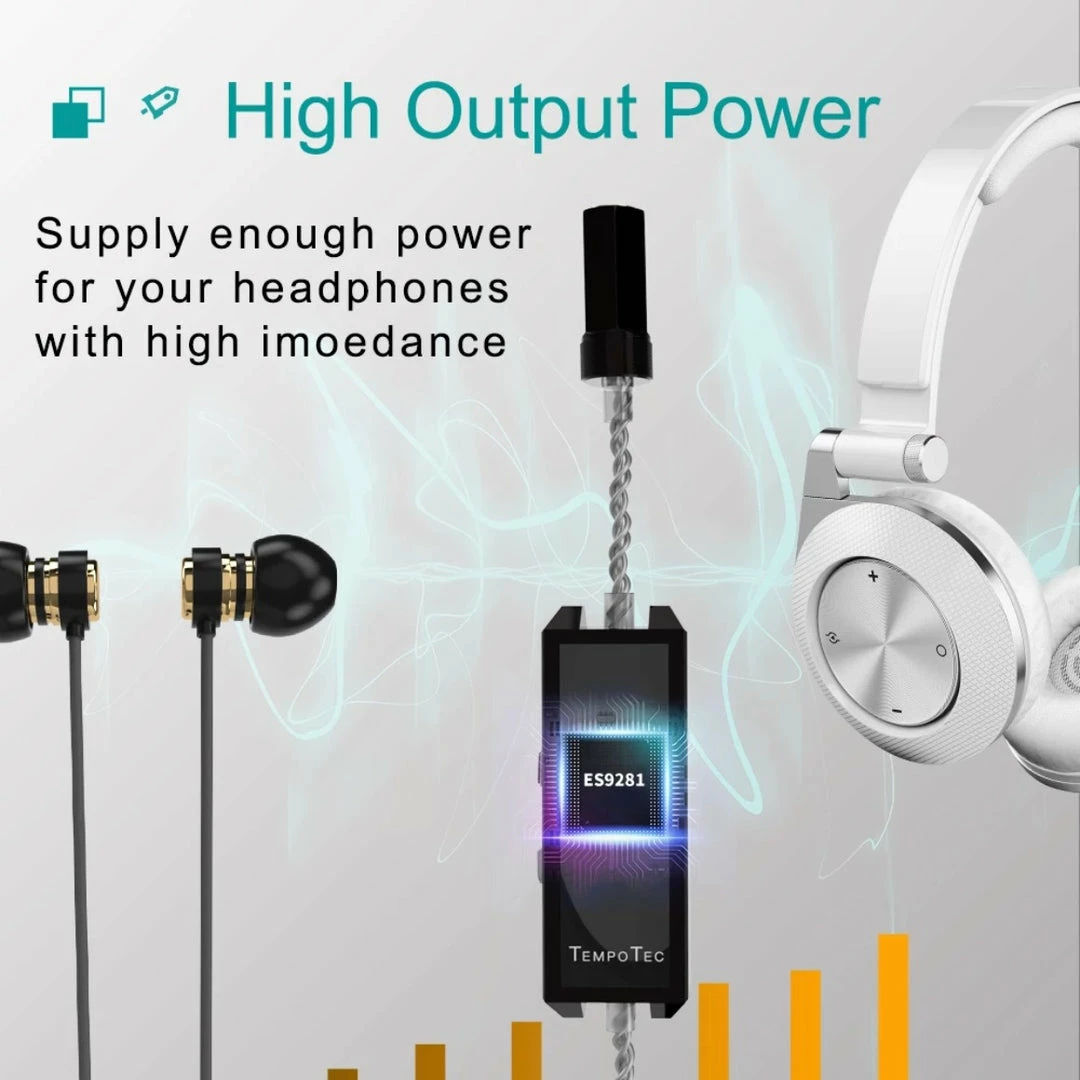 TempoTec Sonata MHD is engineered for low power consumption, restricting it to drain the battery on your smartphone or devices and letting you enjoy your music without any hassles. Sonata MHD outputs a whopping 70mW@32 Ohms, enough to power all kinds of HiFi headphones with high impedance. Sonata MHD delivers 2 VRMS of output power for superior audio.