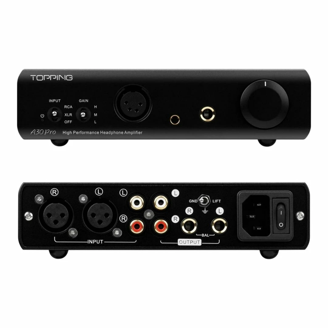 When the Topping A30 Pro is paired to a headphone with an impedance greater than 250 ohms, it offers complete Class A operation, thanks to the ample quiescent current architecture. When multiple pieces of equipment are operating in conjunction, ground loop noise can occur. Ground loop noise most often manifests as a buzzing or humming sound, which is loud enough to damage speakers or headphones. The Topping A30 Pro solves this issue with a dedicated GND/LIFT switch on the rear panel. When in normal use, set the switch to GND. If you encounter ground loop noise, flick it to LIFT, which will change the ground point of the A30 Pro from its chassis to the equipment itโs connected to, eliminating the noise.