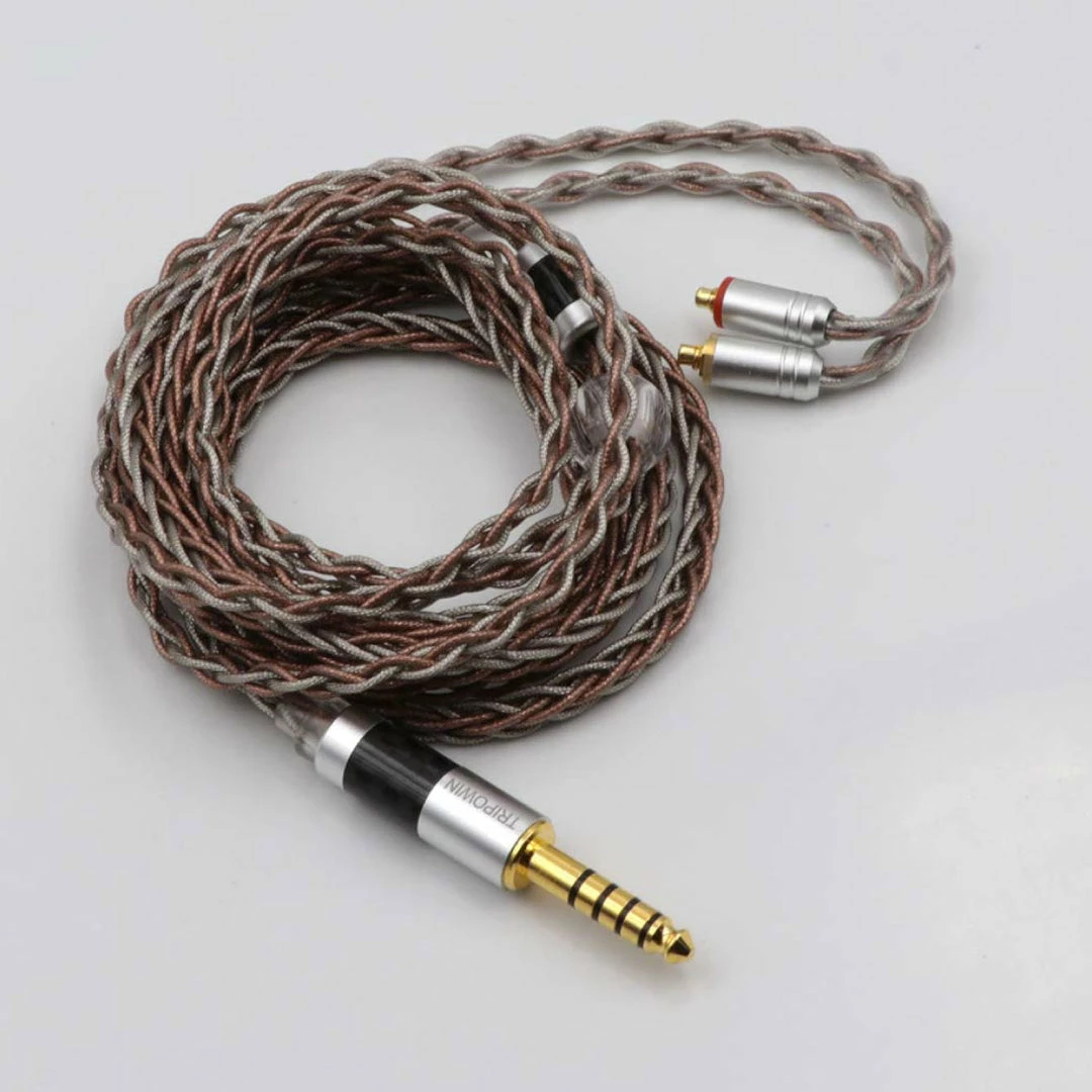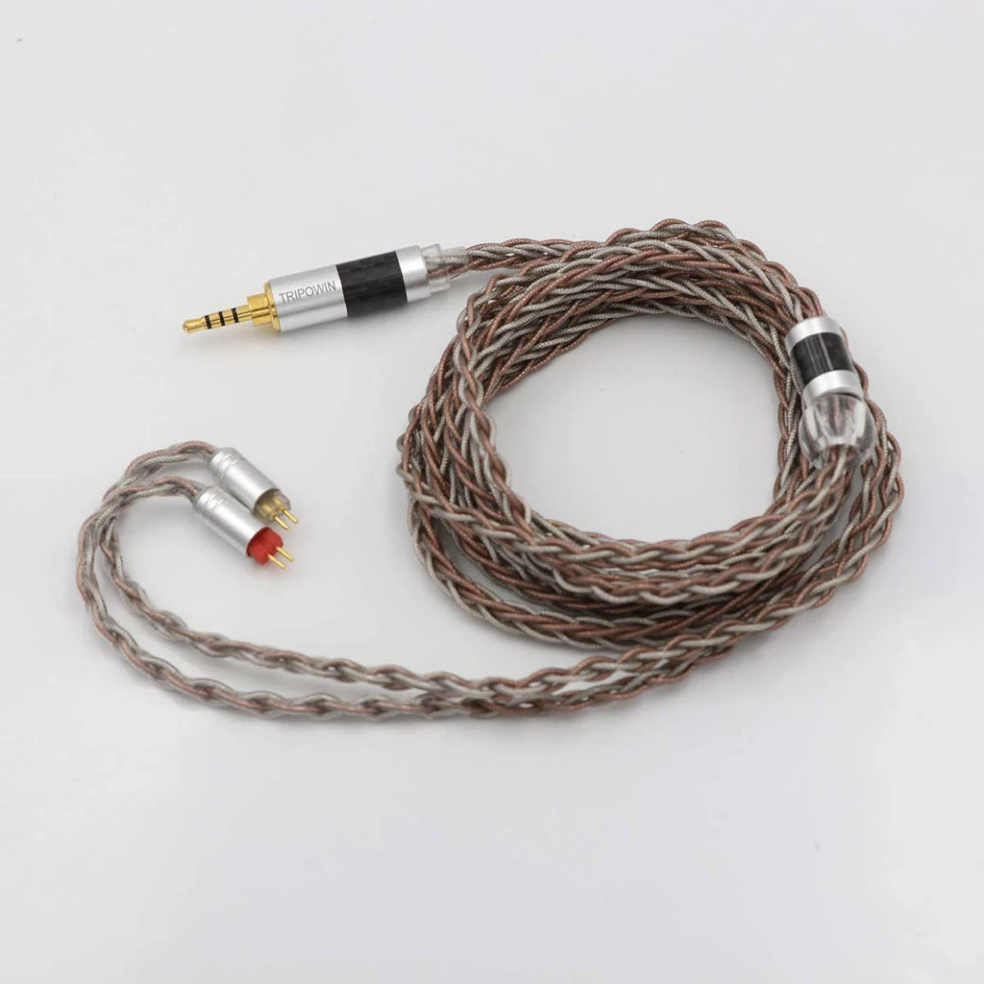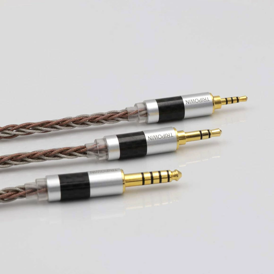 After out-and-out testing, Tripowin settled for silver-copper foil-coated braided cables for the C8. The tinsel wire used in designing the cable is wrapped with multiple strands of thin copper foil. This unique braiding technique makes the cable design elegant and neat. It also makes the cable soft and tangle resistant.