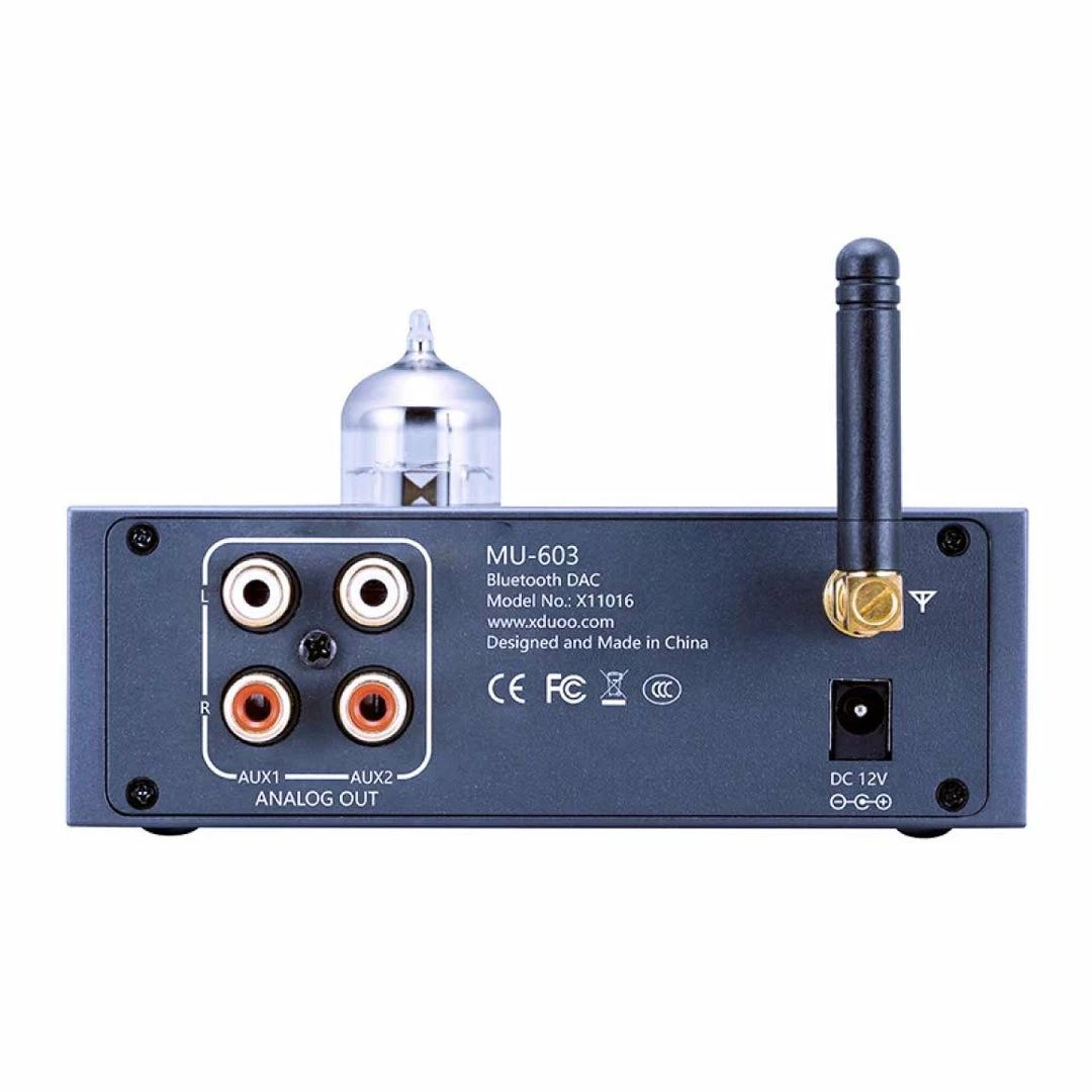 With a Bluetooth 5.1 receiver chip that lets you control your music from your phone and a 12AU7 tube that gives you that warm tube sound, the xDuoo MU-603 is a DAC/Pre-amplifier that offers the best of both digital and analogue worlds. Connect the MU-603 to your speakers using the AUX outputs for a convenient Bluetooth experience. Control the music from your phone, tablet or other wireless devices. Additionally, the MU-603βs preamplifier function will give your speakers the benefits of tube pre-amplification, with a warmer sound signature.
